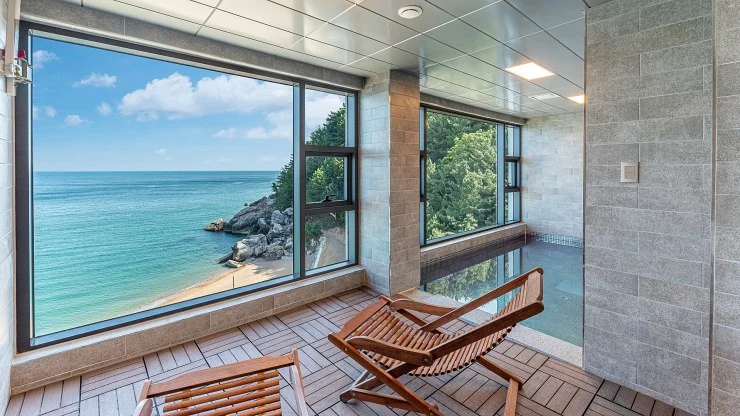 프라이빗어스7 풀빌라는 전 객실 오션뷰로 멋진 전망을 즐길 수 있다. 대형 개별 수영장과 스파도 있어 프라이빗하게 물놀이를 즐길 수 있죠. 미온수도 7만 원에 이용할 수 있다.
