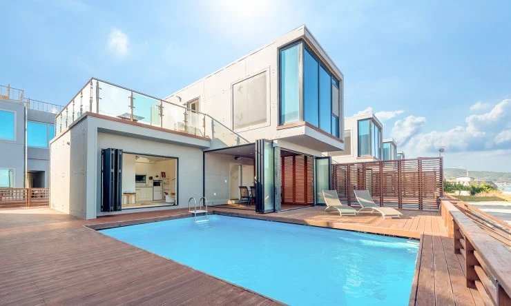 시포트리조트는 2020년 7월 오픈한 신축 숙소이다. 풀빌라 객실은 넓은 통창으로 오션뷰와 함께 수영을 즐길 수 있어요. 미온수도 5만 원에 이용할 수 있다.