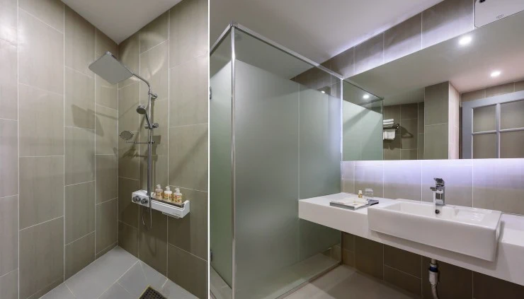 욕실은 1개이며 올라카일리 어메니티가 구비되어 있다. 샴푸, 린스, 바디워시, 칫솔, 치약 등이 제공돼요. 드라이기도 2개라 편리하다.