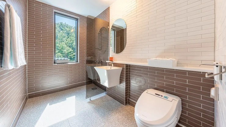 체크인은 15시부터 가능하며 체크아웃은 11시까지이다. 대중교통 이용 시 픽업도 가능하다. 객실마다 개별 테라스가 있으며, 일부 객실에는 사우나도 있어 여유로운 시간을 보낼 수 있다.