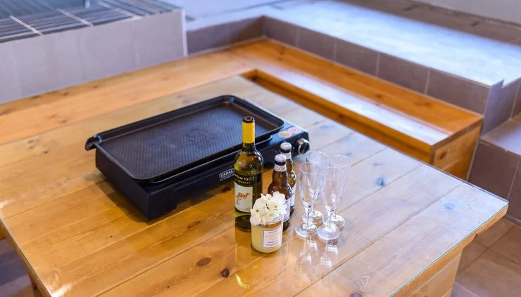 객실 별로 개별 바비큐룸도 있어 프라이빗한 식사가 가능하다. 숯과 그릴이 제공되며 이용 요금도 1만 원으로 저렴하다.