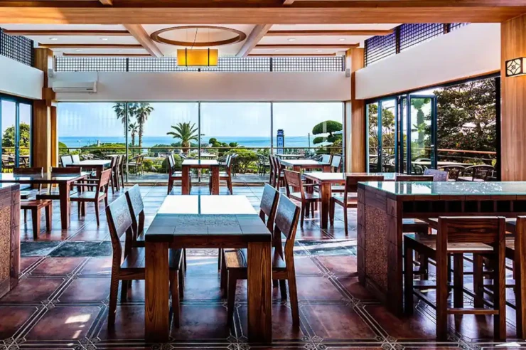 로비와 프런트 데스크는 정원과 마주한 본관 2층에 자리했다. 같은 건물에 카페와 레스토랑, 매점, 의상 대여실이 있다. 매점은 밤 10시에 문을 닫으니, 필요한 물품은 그 전에 구매 완료해두자.