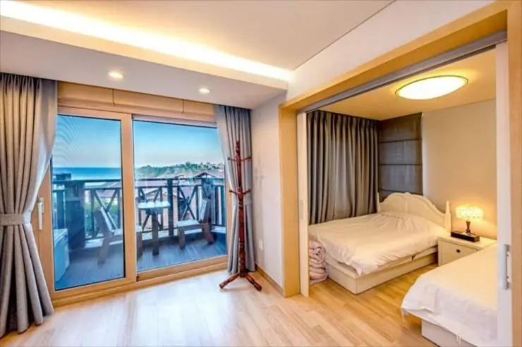 거실과 테라스에서 아름다운 함덕 해수욕장 바다뷰를 감상할 수 있는 것도 이 객실 만의 장점이다.