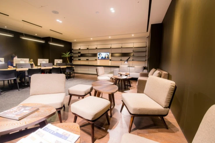 페어몬트 앰배서더는 2021년 오픈한 신축 호텔이더. 드라마 펜트하우스 촬영지로도 유명하죠. 넓고 세련된 인테리어가 매력적이다. 책상과 티 테이블, 커피 머신도 있다.