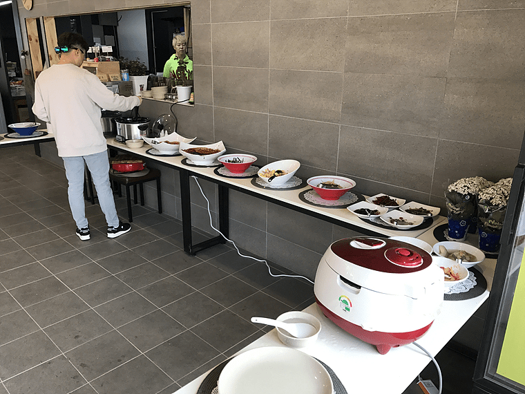 본래 조식은 가평 포세이돈 카라반 단지 내 식당에서 미니 뷔페로 제공됐다. 다채로운 한식 밑반찬을 갖춰놔, 인기가 높았는데 안타깝게도 현재는 투숙객 안전을 위해 운영이 중지됐다.