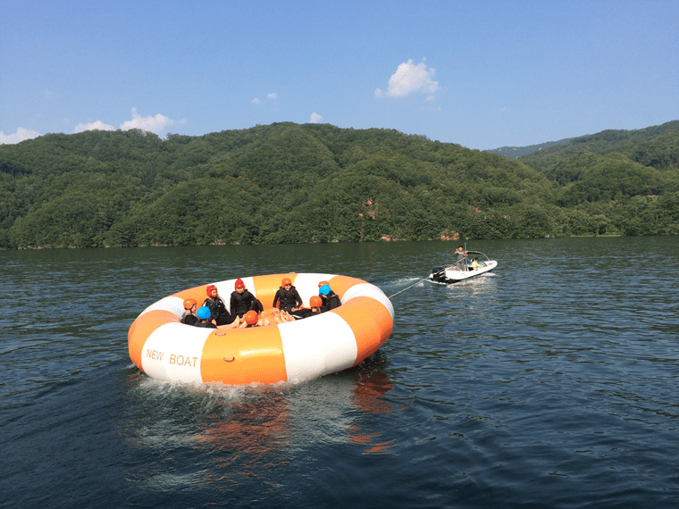 숙소 앞 선착장에서는 각종 보트와 제트스키 등을 한자리에서 즐길 수 있다. 수상 놀이기구는 시즌마다 업데이트돼, 갈 때마다 새롭다. 이외에도 산악 오토바이와 서바이벌 게임도 제공 중이다.