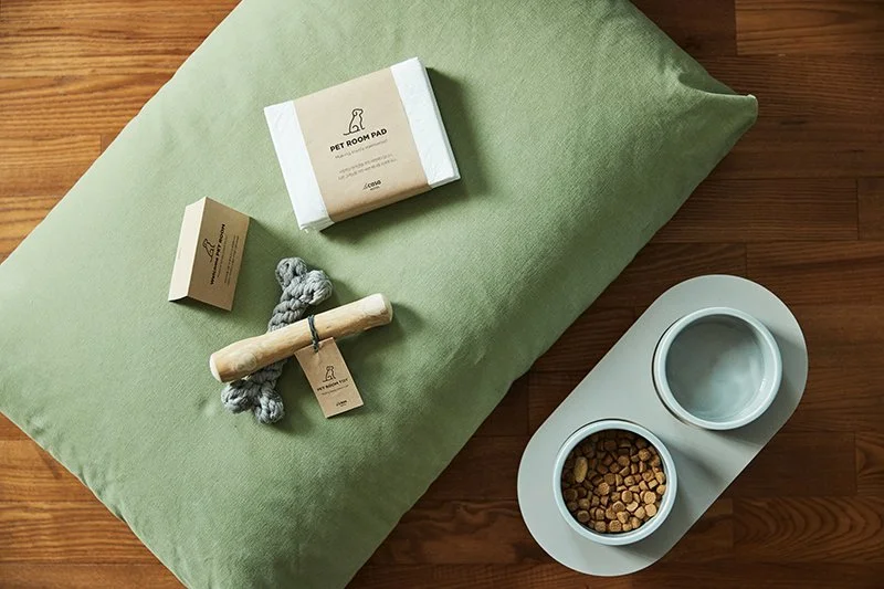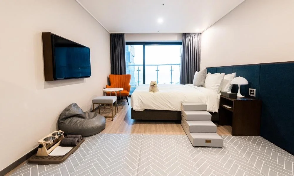 객실 내에는 침대와 침대 계단, 식기, 배변판, 어메니티와 탈취제 등 반려견 전용 물품들이 꼼꼼히 구비되어 있다. 캔 넬이나 개모차도 무료로 대여가 가능하다.