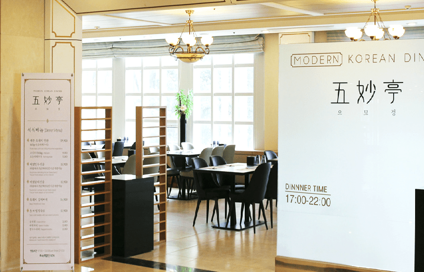 리조트가 자리한 표선은 아무래도 시내와는 거리가 있는데, 맛집 찾는다면 멀리 가지 말고 소노캄 제주 안에 한식당 오묘정에 가보자. 단, 저녁 5시부터 10시까지만 운영된다. 제주 흑돼지 구이와 톳 비빔 막국수를 추천한다.