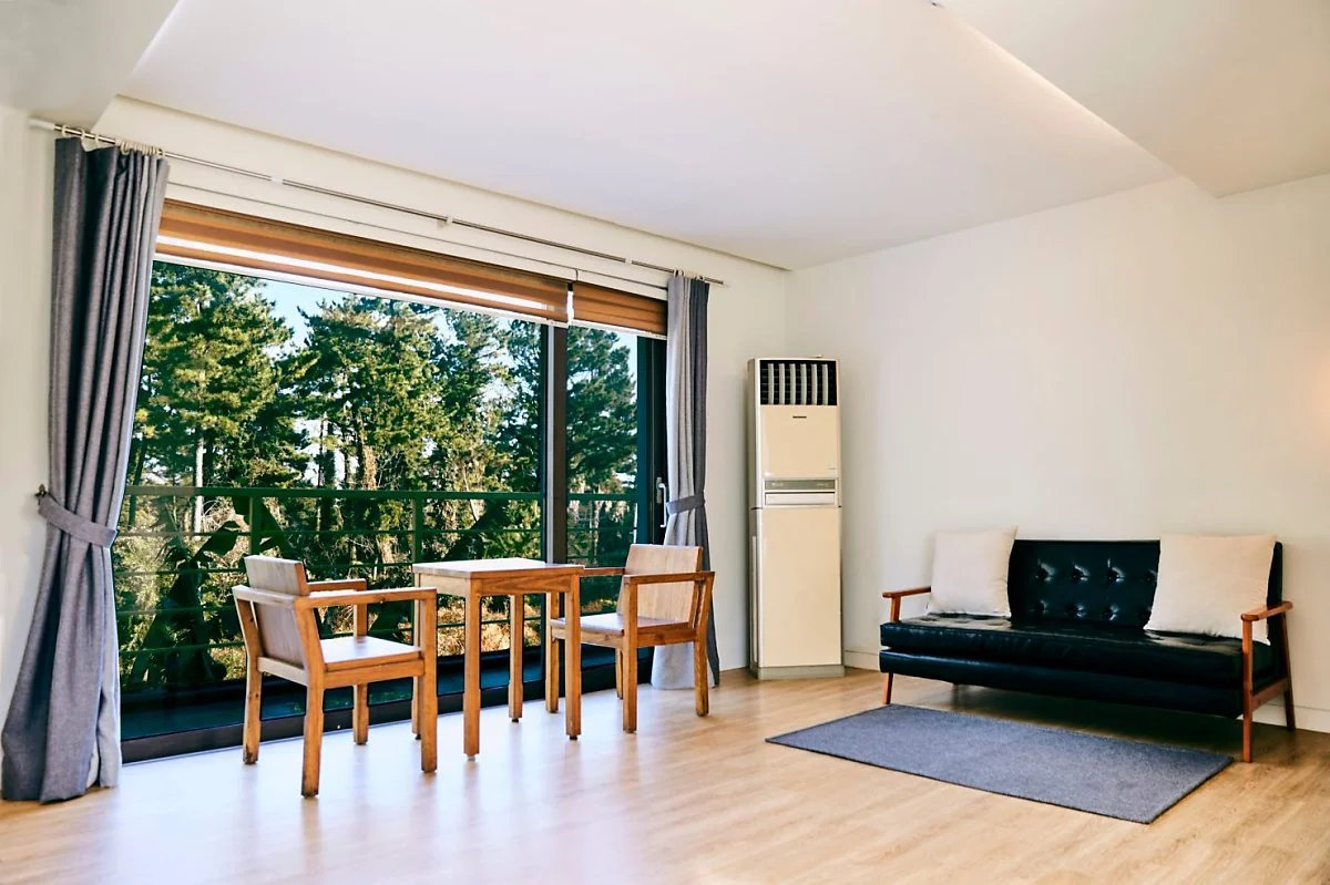포에타펜션은 원룸, 복층, 스파 등 다양한 객실을 제공한다. 모던하고 세련된 인테리어와 숲뷰까지! 빠지는 게 없는 매력적인 제주숙박이다. 스파 객실에서는 숲뷰와 함께 편안히 개별 스파도 즐길 수 있다.