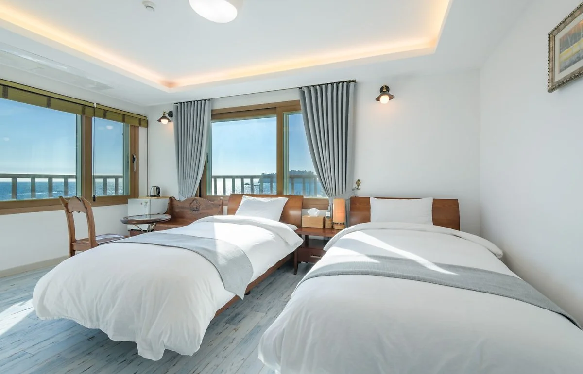 제주 토브펜션은 커플, 복층, 패밀리 등 다양한 객실 타입을 보유하고 있다. 전 객실 오션뷰로 탁 트인 전망도 감상할 수 있으며, 커다란 통창이 양쪽으로 나있어 끊김 없는 파노라마 뷰를 즐길 수 있다. 일출, 일몰 보기에도 좋은 제주숙박이다.