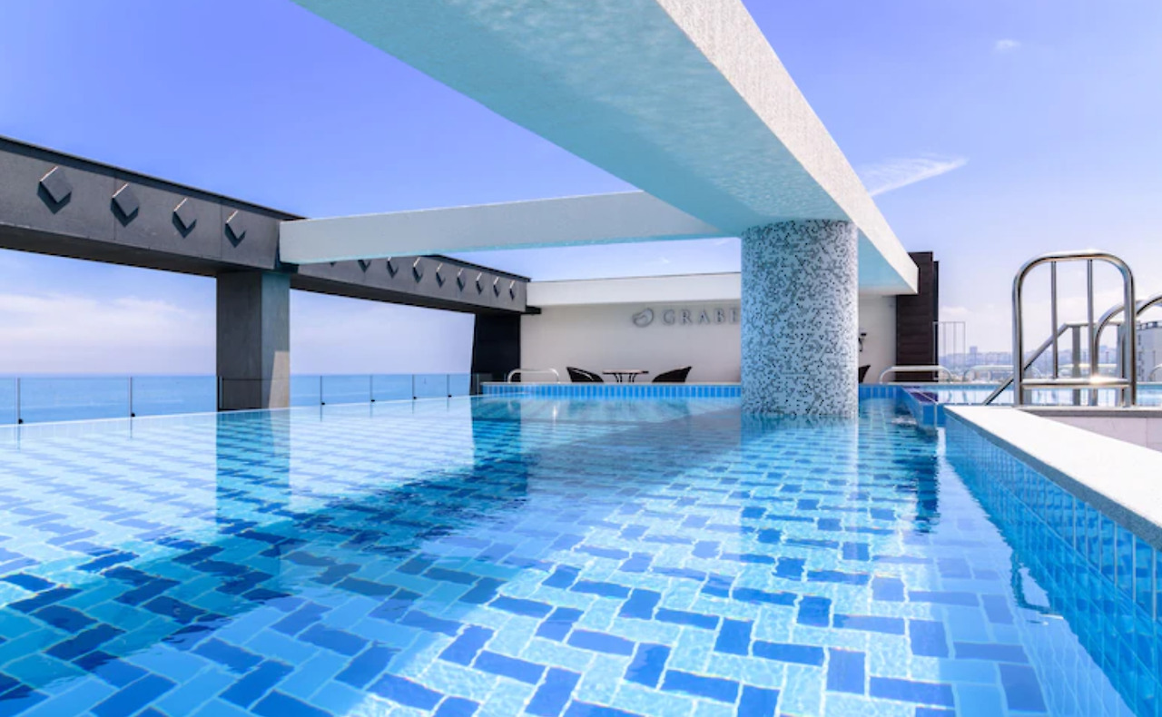 그라벨호텔의 부대시설로는 제주 바다와 맞닿는 듯 멋진 뷰를 자랑하는 인피니티 풀이 있다. 인피니티 풀 한편에는 선베드와 풀사이드바가 준비되어 있고, 온수 풀도 운영되고 있어 사계절 내내 따뜻하게 즐길 수 있다!