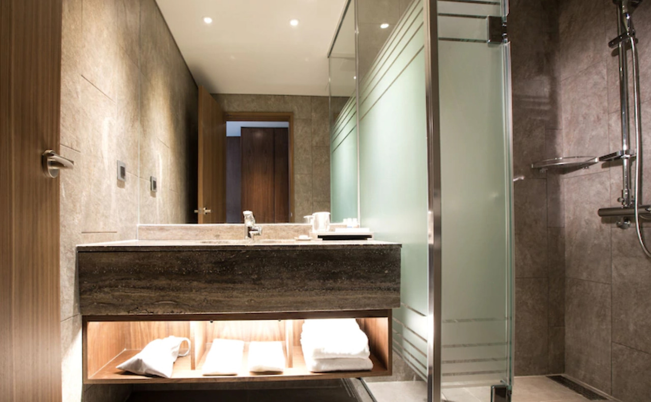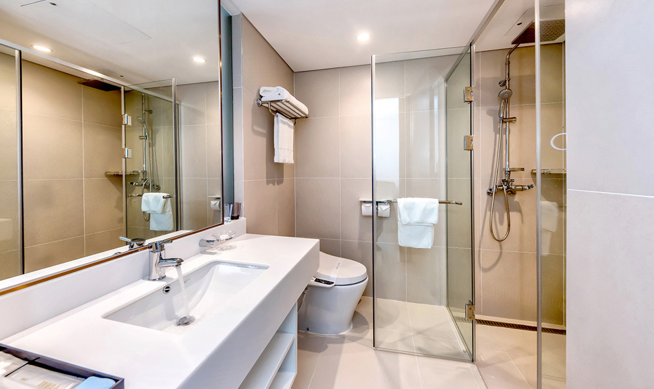 욕실에는 샤워부스와 비데가 설치되어 있다. 어메니티로는 샴푸, 컨디셔너, 바디클렌져, 비누, 수건, 헤어드라이기, 헤어 빗, 화장솜, 면봉, 헤어캡, 위생백, 목욕가운, 실내화 등이 준비되어 있다.