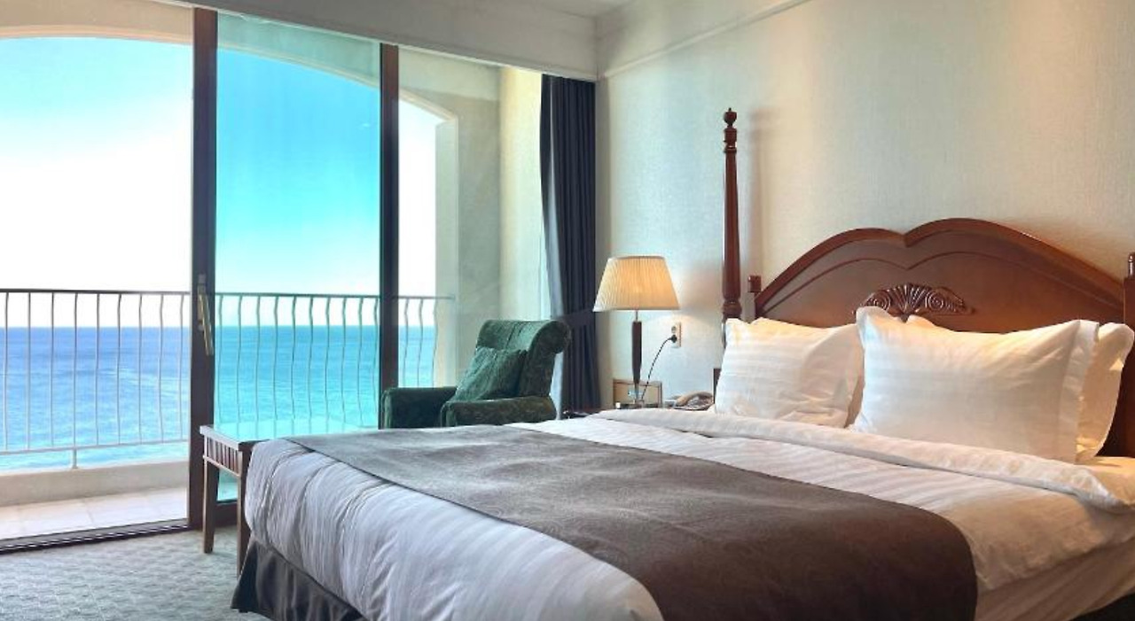 위 객실은 호텔형 슈페리어 더블 룸으로 모던하고 따뜻한 분위기의 인테리어가 창 밖 풍경과 어우러져 커플 숙소로 손색없다.
