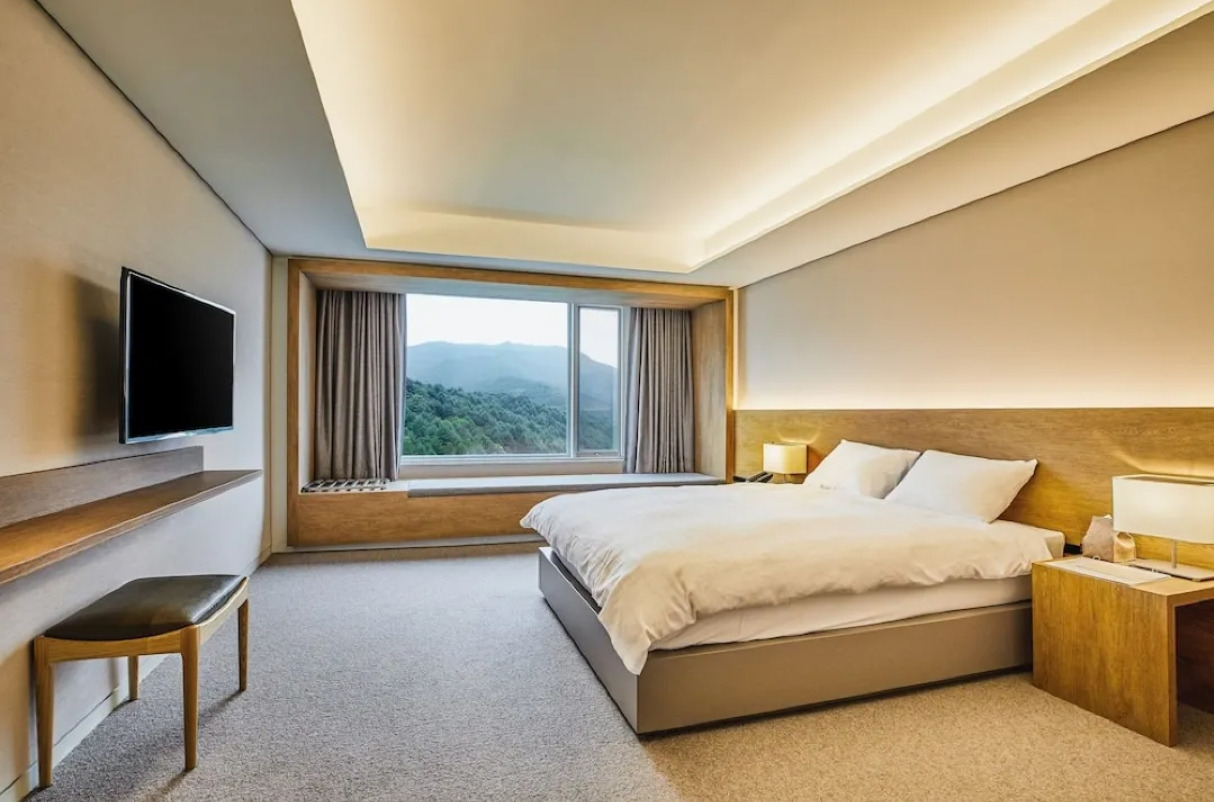 객실은 수페리어, 디럭스 마운틴뷰, 디럭스 가든뷰, 이그제큐티브, 포인포 키즈룸, 마이카 키즈룸 스위트, 주니어 스위트, 로열 스위트로 나뉘며 개인적으로 프렌치 스타일로 리뉴얼돼 비로봉의 비경을 즐길 수 있는 주니어 스위트 객실을 추천하고 싶다.