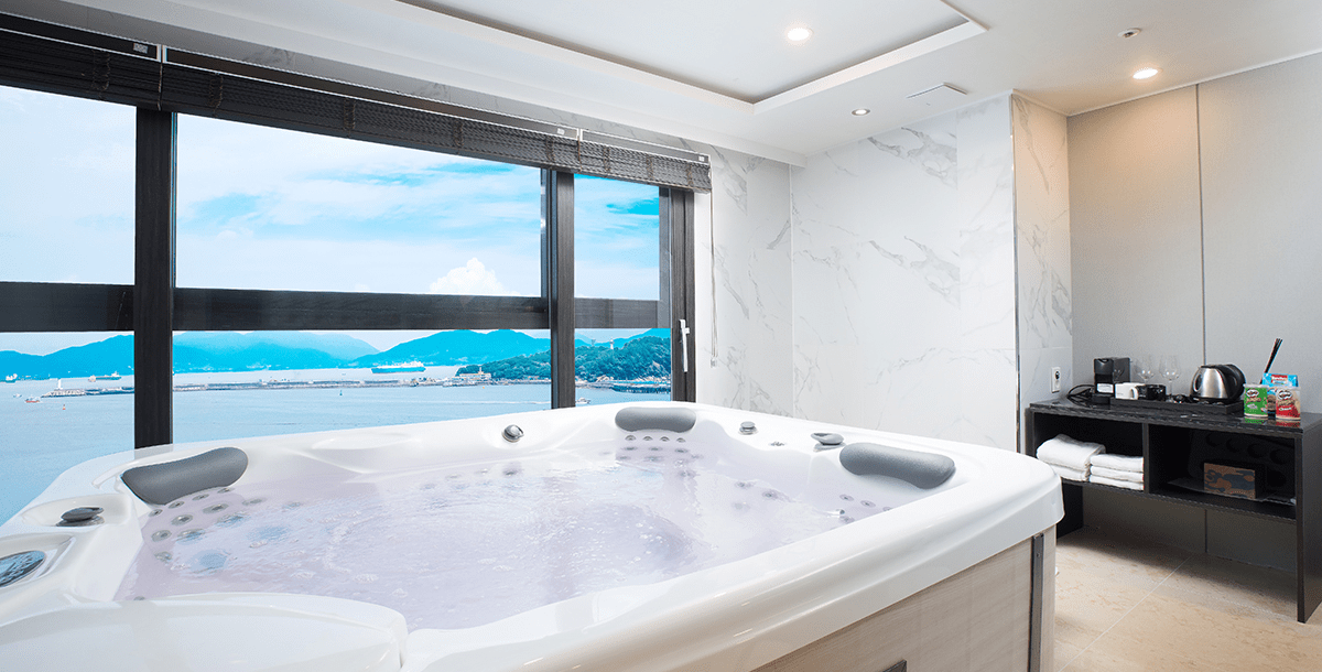 최고층인 23층에 자리한 객실로, 남녀노소에게 인기가 높다. 침실과 거실, 욕실, 테라스로 구성됐는데 자쿠지는 거실 한편 분리된 공간에 설치돼 있어서 스파와 동시에 여수 바다를 즐겨볼 수 있다.