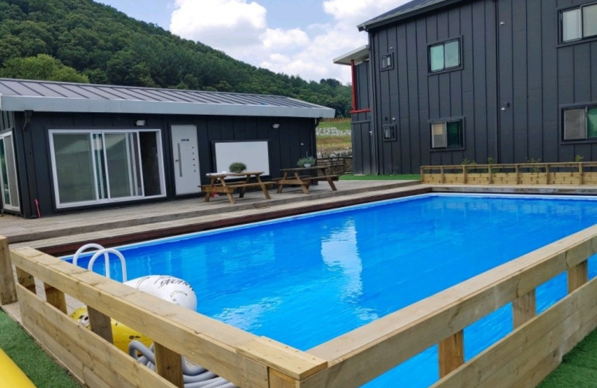 부대시설로는 야외 수영장과 애견 운동장, 족구장, 24시간 매점 등이 운영되고 있다. 체크인은 오후 15시 이후부터 가능하며, 체크아웃은 오전 11시까지 마무리하면 된다.