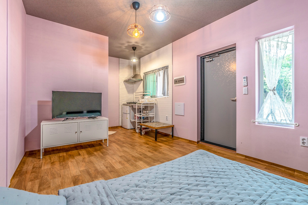객실에는 침실과 주방, 개별 욕실을 갖추고 있는데요. 에어컨, TV, 냉장고, 드라이기 등이 구비되어 있으며 대체로 따듯한 분위기가 느껴진다.