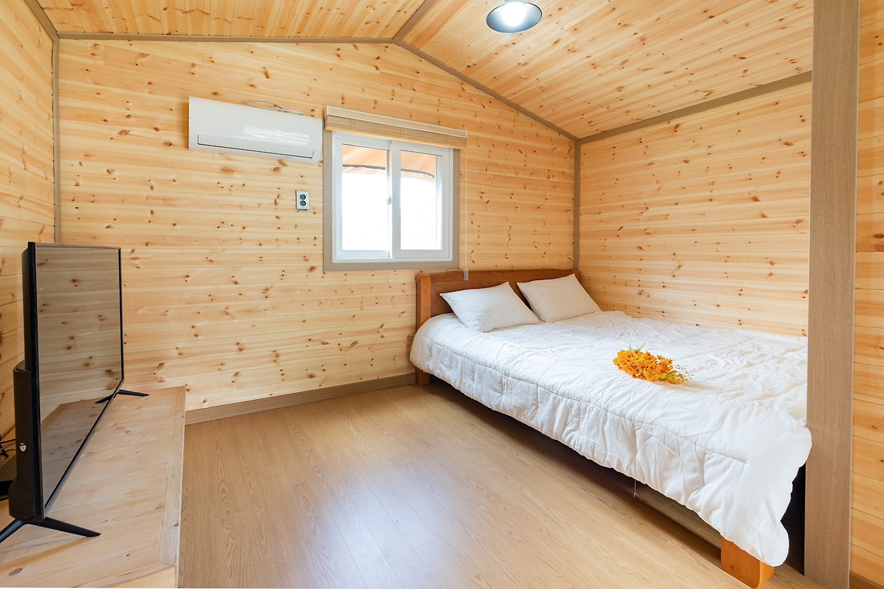 객실은 총 4개동으로 나눠져 있다. 반려견 동반이 가능한 곳은 장미동과 백합동으로 장미동은 중형견 이상, 백합동은 소형견까지만 동반이 가능하다. 두 곳 모두 애견용 펜스도 설치되어 있고, 바닥 난방도 가능해 아직 아침저녁 일교차가 큰 시기에 걱정 없이 따듯하게 이용할 수 있다.