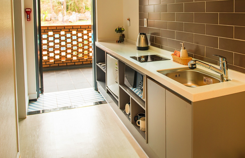 도담 객실은 고급 스파 욕조를 갖추고 있어 특히 허니문 숙소로도 인기가 높다. 퀸사이즈 침대와 50인치 TV, 시스템 에어컨, 화장대 등이 갖추어져 있고, 간단한 취사가 가능한 주방까지 준비되어 있다. 주방에는 소형냉장고, 전자레인지, 전기쿡탑, 전기 포트, 식기 세트가 준비되어 있다.