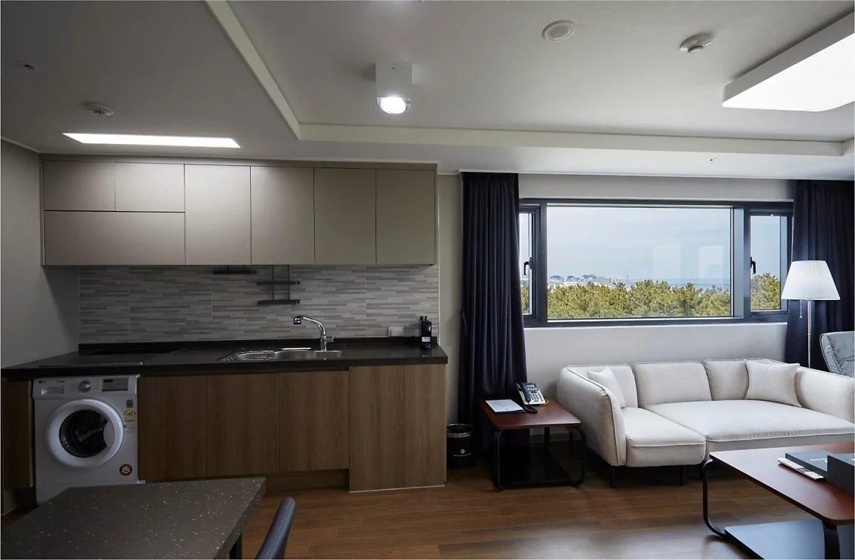 속초 컨피네스 비치 호텔에는 세탁기와 싱크대도 설치되어 있다. 물놀이를 자주 하게 될 여름이나 장기 숙박 시 유용하게 사용할 수 있다! 취사는 불가능하지만 싱크대가 있어 간단한 음식을 먹기 좋을 거다.