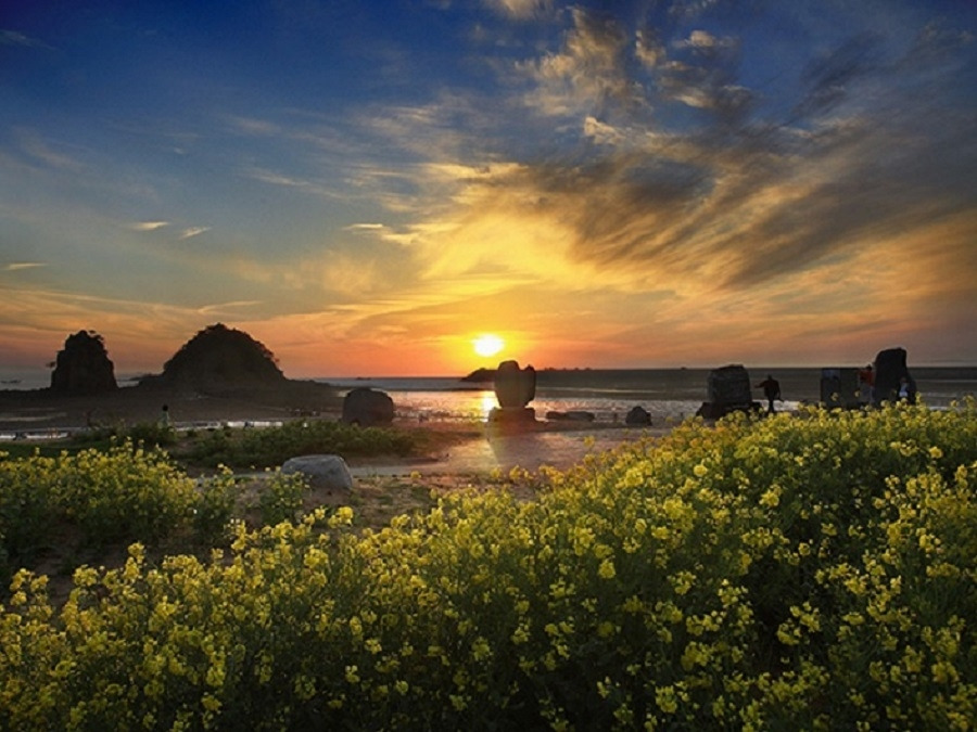 서해안 하면 역시 꽃지해수욕장! 한국 관광 100선에 선정된 꽃지해수욕장은 전국적으로 아름다운 일몰명소로 유명한 곳이다. 백사장과 해당화가 가득해 꽃지해수욕장이라는 이름이 생겼는데, 할미, 할아비 바위는 꽃지해수욕장의 놓쳐서는 안 될 포토 스팟이니 예쁜 사진 남겨보길 추천한다!