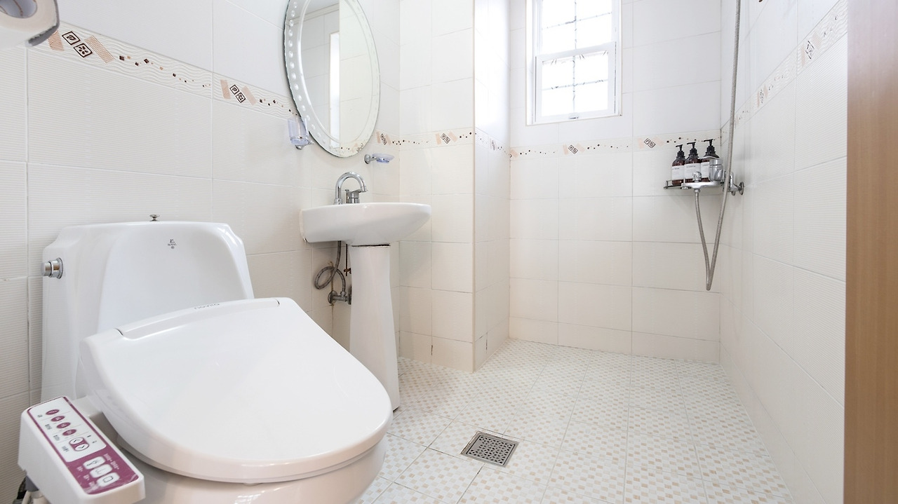 욕실에는 샤워기와 비데가 설치돼 있다. 어메니티로는 샴푸와 린스, 바디워시, 비누, 치약과 칫솔, 수건, 드라이기가 제공된다.