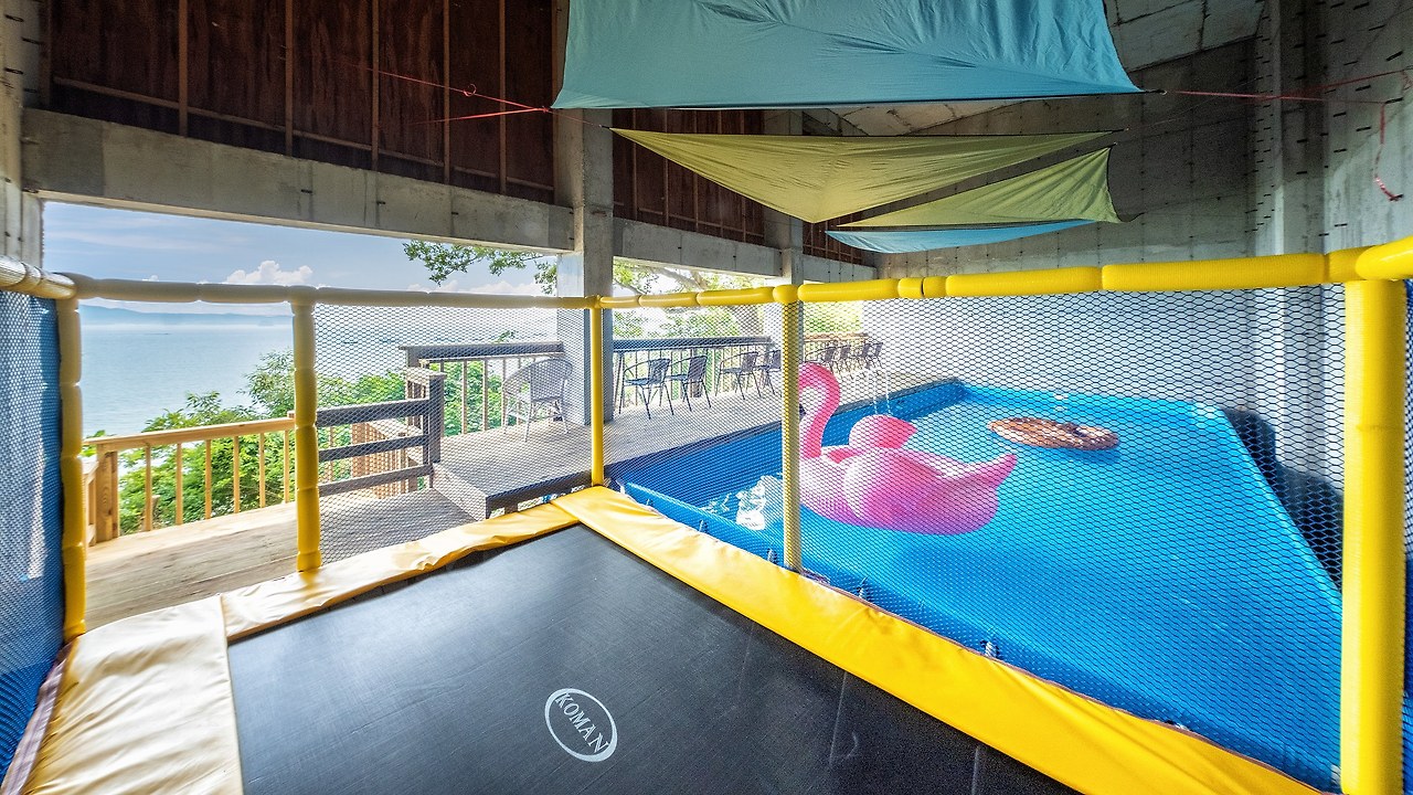 부대시설로는 여름철 운영되는 수영장과 어린 친구들을 위한 트램펄린도 있다. 바다를 마주보도록 설계되어 힐링뷰 보며 즐겨보자