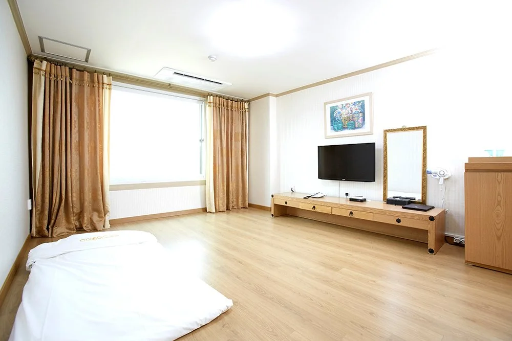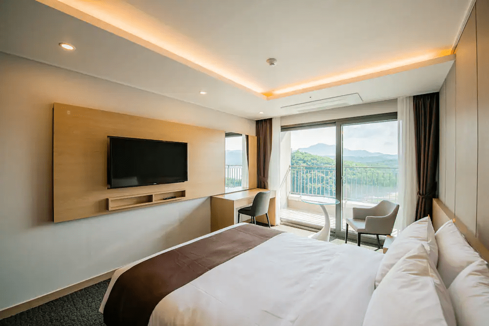 넓은 통유리 너머로 춘천의 아름다운 경관을 감상할 수 있는 객실로 침실과 욕실, 발코니로 구성됐다. 객실에는 퀸 베드와 TV, 미니바, 커피포트, 에어컨 등을 갖췄으며, 가족이라면 더블 대신 트윈룸도 좋은 선택이 될 거다.