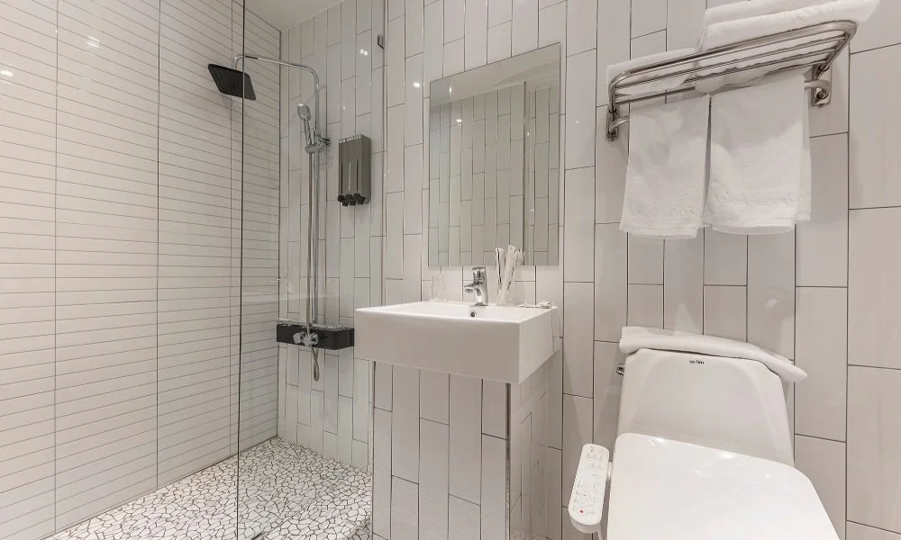 욕실에는 샴푸와 컨디셔너, 바디워시가 디스펜서 형식으로 부착돼 있다. 세면대에는 칫솔과 치약, 비누를 비치해 놨다. 면도기와 빗, 왁스 등은 프런트 요청하면 제공해 준다.