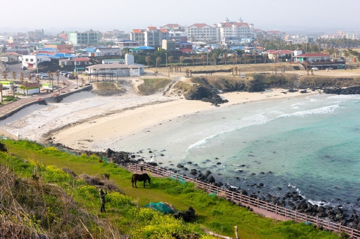함덕해수욕장은 이국적인 풍경을 감상할 수 있어 계절과 상관없이 항상 사랑받는 장소이다. 특히 서우봉과 이어져 있어함께 둘러볼 수 있어 알찬 여행 코스로 서우봉 산책로가 잘 조성돼 있어 가족들과 함께 오르기에도 좋다.
