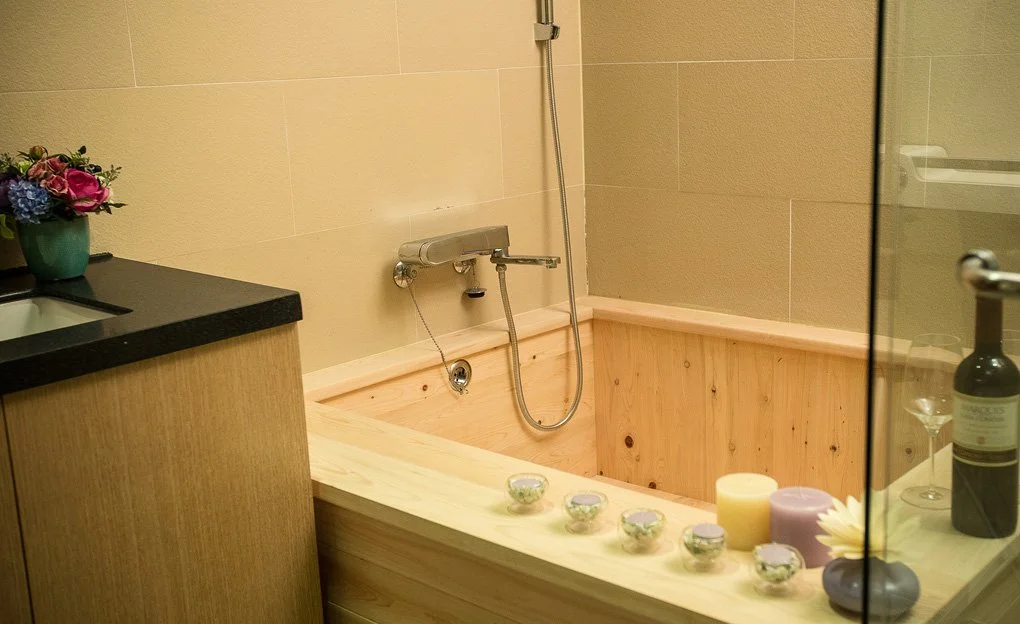 어메니티는 샴푸와 바디워시가 구비되어 있다. 개별 세면도구를 지참하는 것을 추천! 주니어 스위트 룸에는 히노끼 욕조도 마련돼 있으니, 은은한 편백 향을 느끼며 힐링의 시간을 즐겨보자.