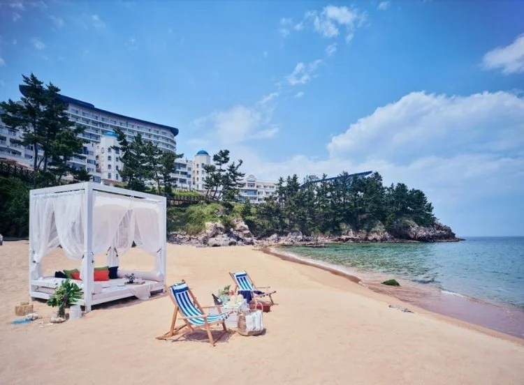 5월 29일부터 그리스 산토리니를 모티브로 한 프리미엄 프라이빗 비치를 운영하고 있다. 감성 카바나부터 파라솔 등이 예쁘게 세팅되어 있다. 분위기 좋게 바다를 즐기고 싶은 분들에게 추천! 사진 찍기 참 좋은 곳이다.