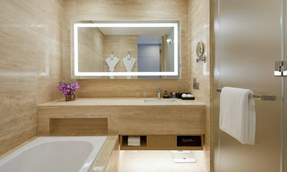 욕실은 욕조가 있는 세면대 공간과 화장실, 샤워실을 분리해, 투숙객 편의성을 높였다. 어메니티로는 바오밥나무 오일의 배스 용품이 제공된다. 비타민과 오메가 성분이 풍부해, 아이와 쓰기 좋다.