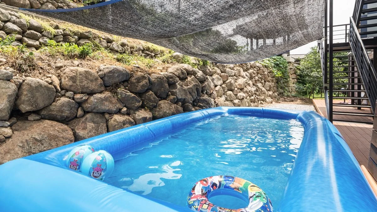 펜션 외관은 블랙과 화이트의 조화로 모던한 느낌을 준다. 통창이 설치된 객실에서는 언제든 탁 트인 전망으로 계곡을 마주할 수 있다. 정원도 잘 조성해놔, 숙소 전반적으로 깔끔한 분위기가 느껴진다.