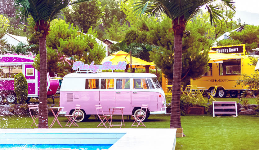 서울근교로 1박 2일 여행지로 추천하는 감성 캠핑의 끝판왕이 나타났다! 감성 글램핑부터, 미온수 수영장, 사진 찍기 좋은 테마 카페까지! 다양한 즐길 거리가 준비되어 있는 이천 인디어라운드글램핑으로 떠나보자!
