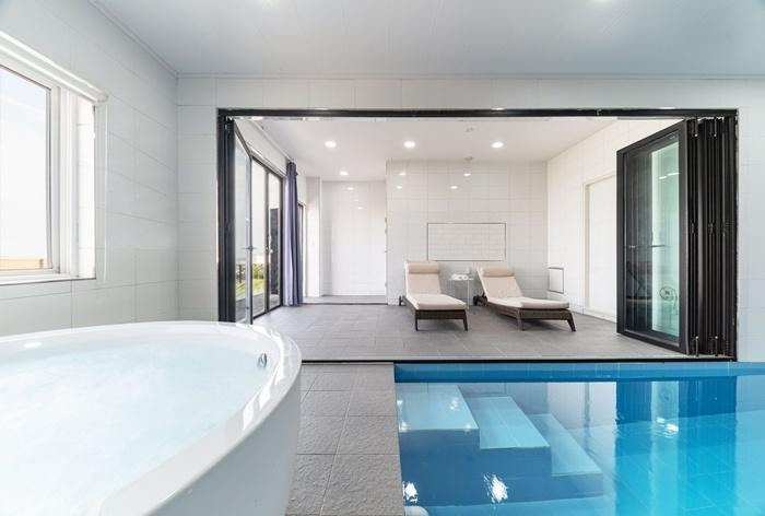 마지막으로 소개할 포항풀빌라 펜션은 조사리간이해변 부근에 있는 더모스트풀빌라로 객실은 총 3개로 구성돼 있다. 1층부터 3층까지 갖춰져 탁 트인 오션뷰를 감상할 수 있는데, 세련되고 모던한 인테리어와 전 객실 스파 욕조가 갖추어져 있다. 풀빌라 객실은 실내 풀빌라까지 갖추어져 있다.