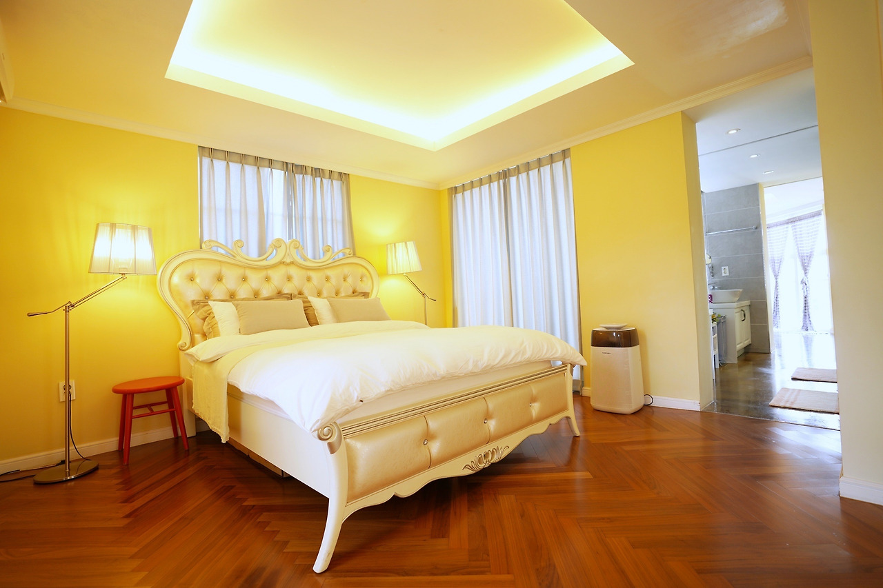 객실 내부는 화사한 노란색과 조명들로 웨딩촬영 장소와 브라이덜 샤워를 위해 많은 분이 찾아온다고 한다. 객실 구조도 삼각형으로 독특한 편인데, 모두 채광이 좋고 다른 느낌의 풍경이 매력적이라 사진 찍기 참 좋은 곳이다