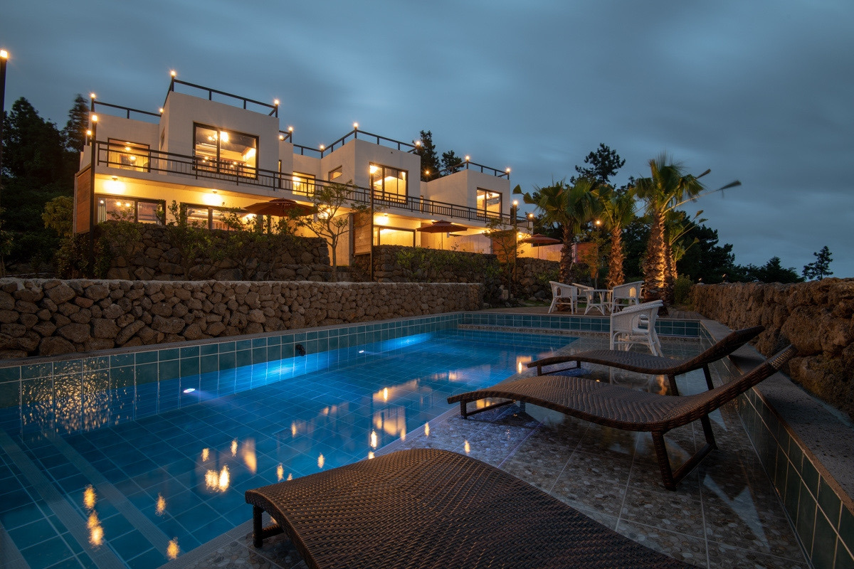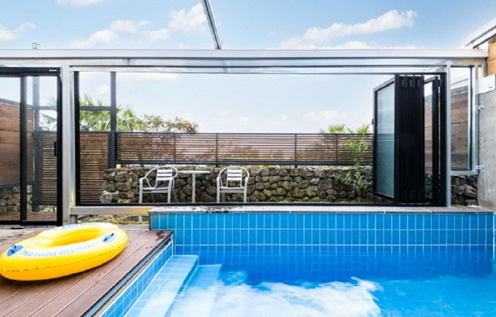 마지막으로 소개하는 제주도숙소 후하우스 풀빌라는 낮은 돌담과 귤나무, 야자수까지 어우러져 제주 특유의 분위기를 느낄 수 있는 곳이다. 객실 내부는 콘크리트 벽과 우드톤 가구가 적절하게 조화를 이뤄 감각적이고 아늑한 편이다. 객실 타입에 따라 개별 풀빌라 또는 스파, 바비큐 테이블 등이 준비돼 있어 객실 안에만 있어도 알찬 여름 휴가를 보낼 수 있다.