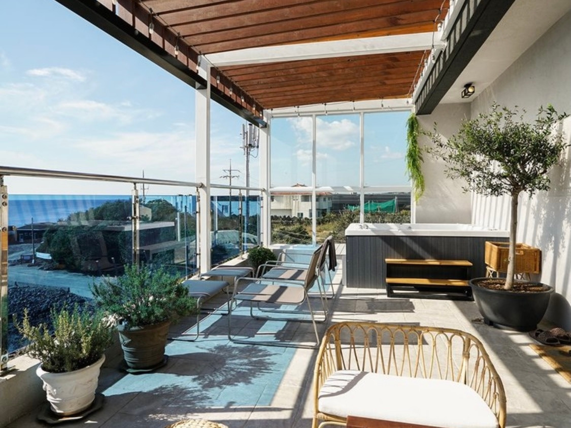 이곳의 매력은 단연 발코니! 숙소 곳곳에 제주 바다를 가까이에서 맞이할 수 있도록 발코니가 설치돼 있다. 그뿐만이 아니라 노천스파도 설치돼 있으니 가족과 함께 프라이빗한 휴식을 취하고 싶다면 더 비교해볼 필요도 없이 이곳이다!