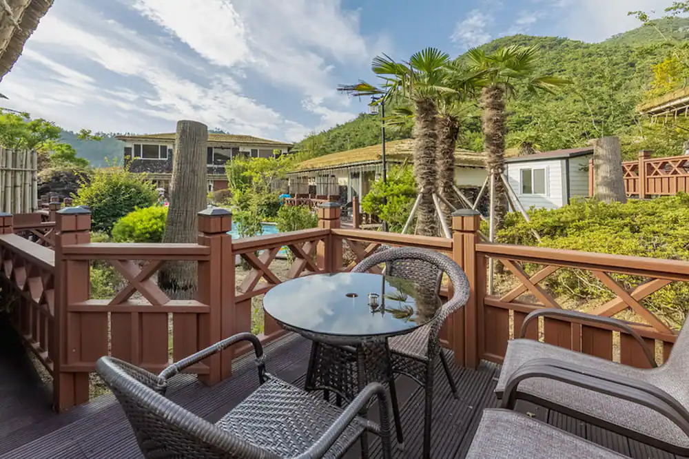 대중교통보다는 자차 또는 렌터카 이용을 추천한다. 객실당 한 대까지 무료 주차 가능하며 차로 10분 내외 거리에 통영 공설 해변과 미래사가 있어, 주변 관광하기에도 좋다. 입·퇴실 전후로 둘러보자.