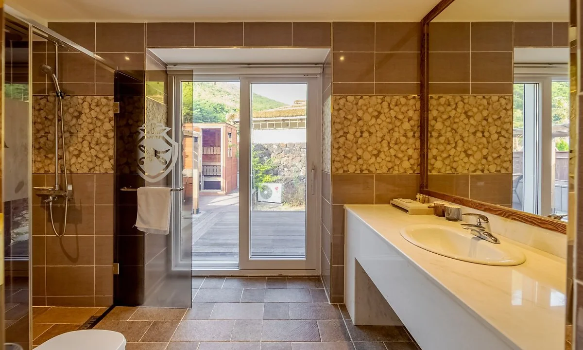 욕실에는 샴푸와 컨디셔너, 바디워시, 바디로션, 비누가 제공된다. 이와 함께, 칫솔과 치약, 쉐이빙 키트, 샤워캡, 화장솜, 면봉, 빗, 드라이기가 비치돼 있다. 세안제 정도만 챙겨 오면 된다.