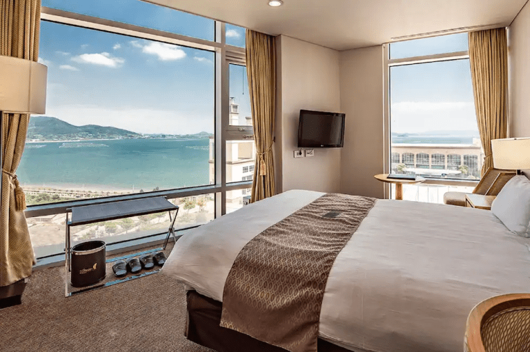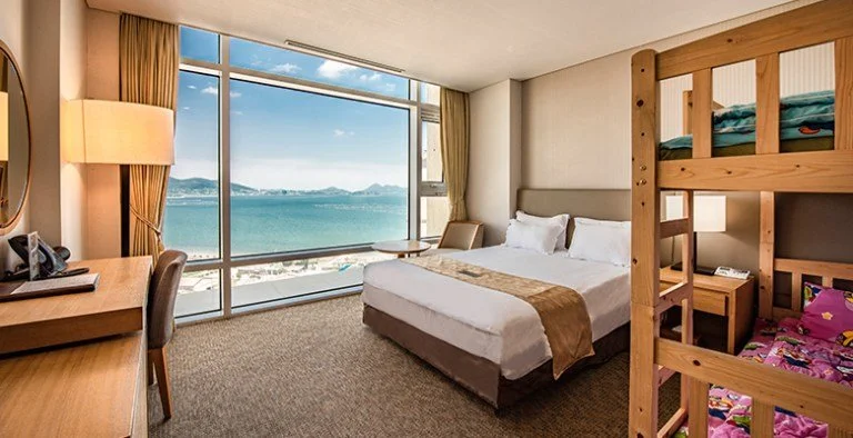 커플이나 친구끼리 여행 왔다면 호텔 타입 객실을 추천한다. 침대와 TV, 냉장고, 에어컨, 전기포트 등을 두루 갖췄다. 무엇보다 전망이 압도적이다. 양면 창으로는 아름다운 여수 바다를 만날 수 있다.