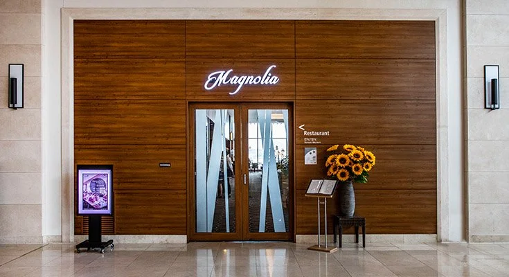 조식은 여수 디오션 리조트 호텔 1층 매그놀리아 레스토랑에서 오전 7시부터 10시까지 운영된다. 한식과 양식이 고루 포함된 뷔페로 제공되는데, 경우에 따라, 단품으로 대체될 수 있다.