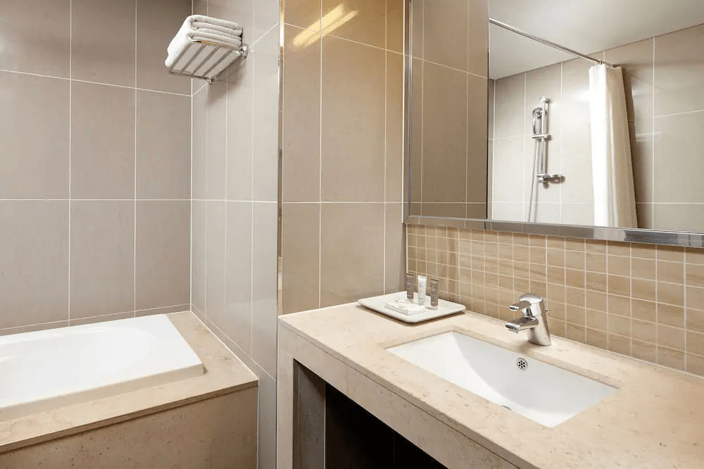 패밀리 캐릭터 룸 욕실에는 샴푸와 바디워시, 샤워 스펀지, 수건, 드라이기가 제공된다. 이와 함께, 유아용 샴푸와 로션, 가운 등이 비치돼 있다. 칫솔과 치약은 따로 챙겨 와야 한다.