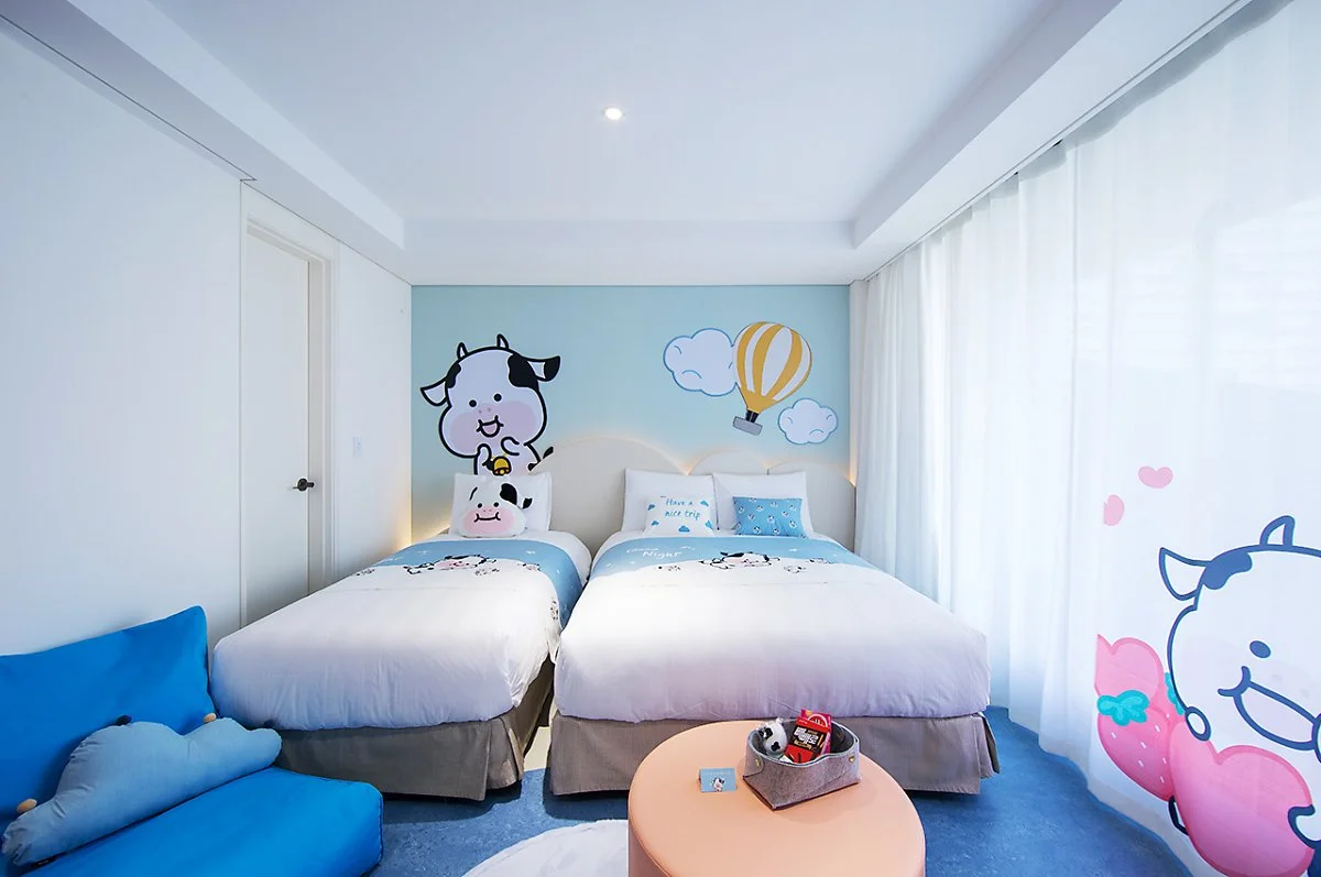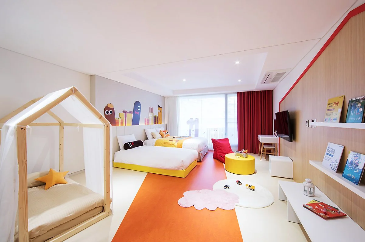 객실은 캐릭터와 구조에 따라 4가지 타입으로 나뉜다. 캐릭터는 말랑이와 빼빼로 중 선택할 수 있다. A형 객실은 트윈 베드와 다락방, 욕실로 구성돼 있다. B형은 다락방 대신 키즈 텐트를 구비돼 있다.