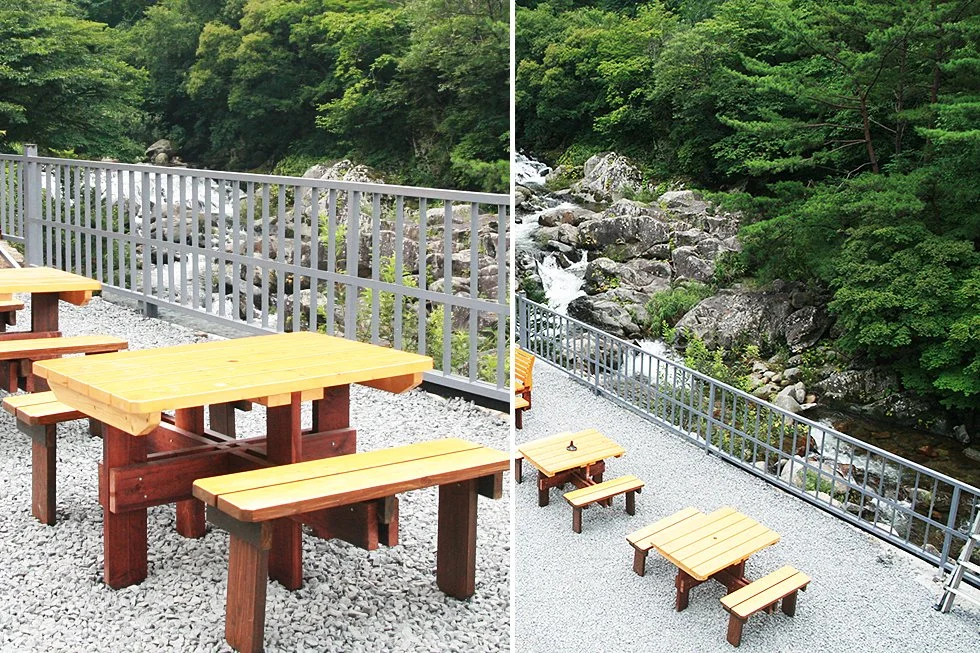 펜션 앞 마당에서 즐거운 바비큐 파티도 가능하다. 시원한 계곡 소리와 함께 맛있는 식사를 즐겨보자.