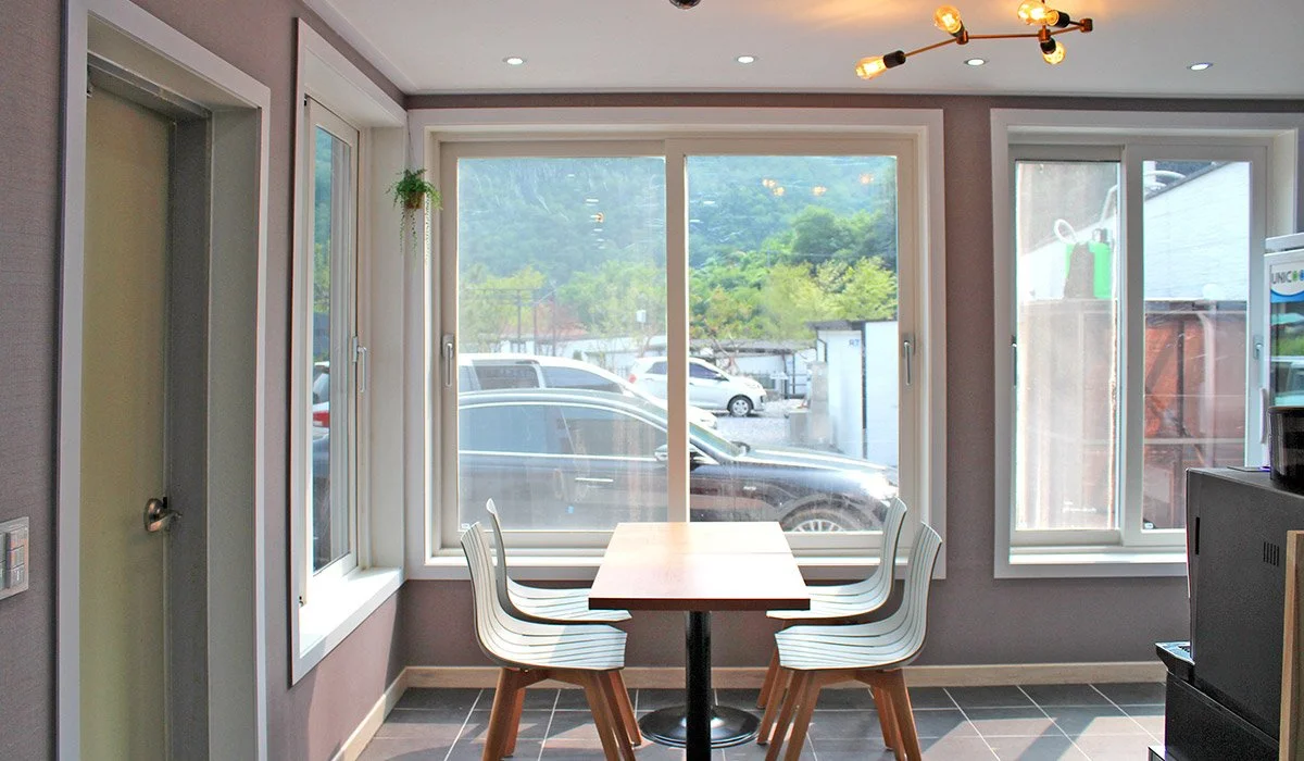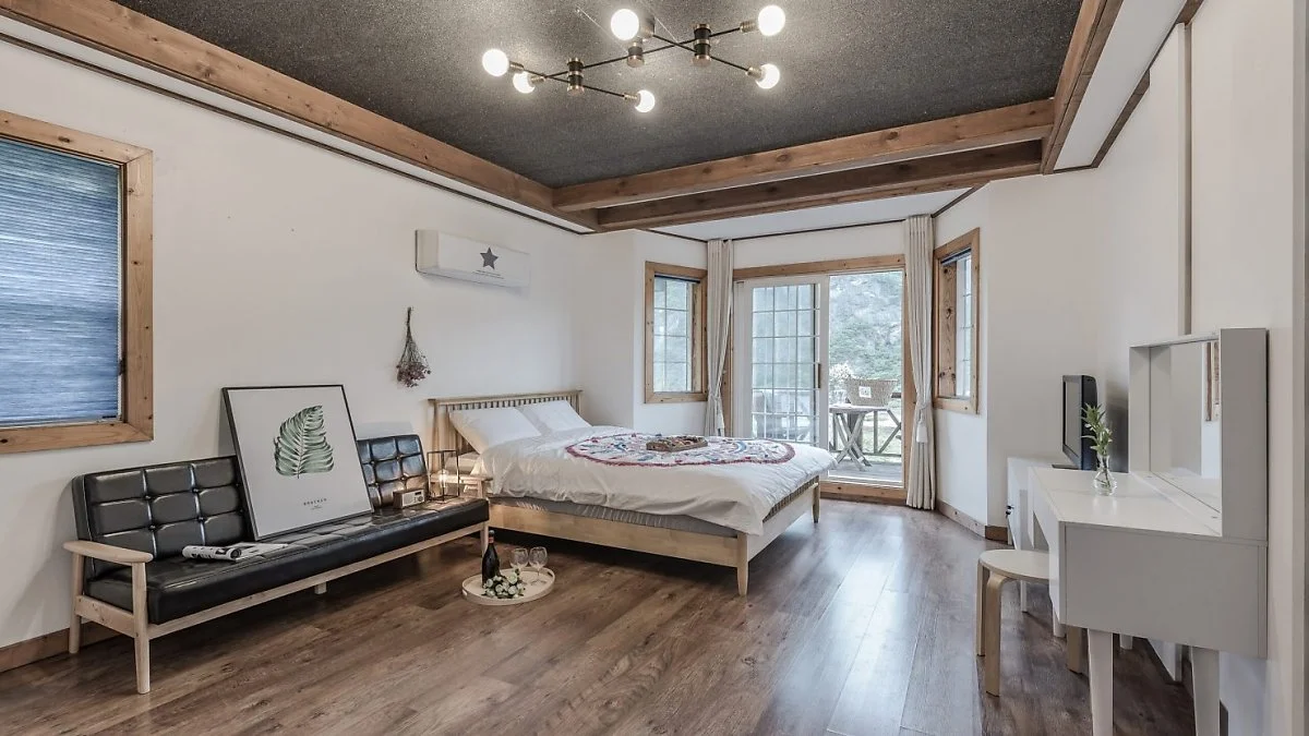 단양 숙소 별무리펜션은 소백산 자락에 위치해 있다. 덕분에 넓고 커다란 통창으로 탁 트인 마운틴뷰를 누릴 수 있어 인기가 높다. 아늑한 복층 구조로 커플, 4인 가족이 편안히 머무를 수 있다. 객실 내 취사도 가능하며 도구가 잘 갖춰져 있다.