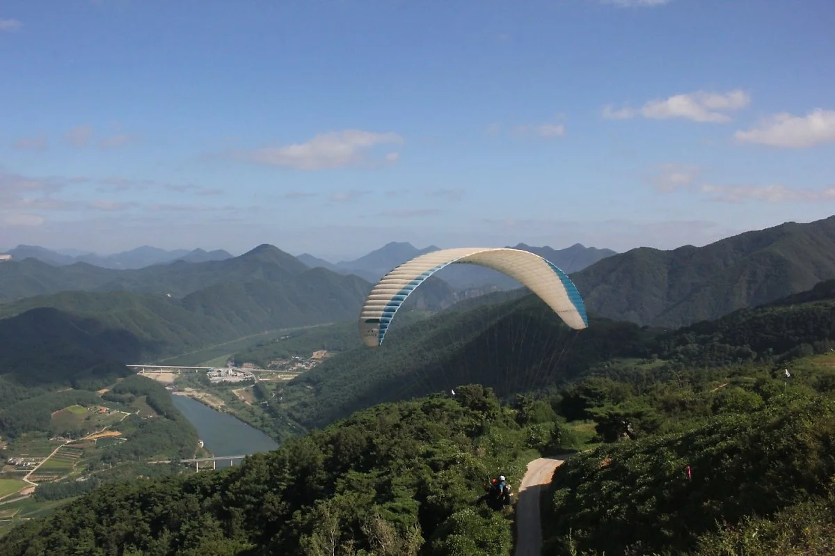 단양하면 빼놓을 수 없는 패러글라이딩! 탁 트인 시야가 매력적인 양방산 정상에서는 패러&행글라이딩을 즐길 수 있다. 초보자도 쉽게 배울 수 있으니 이번 여름에 도전해보자!