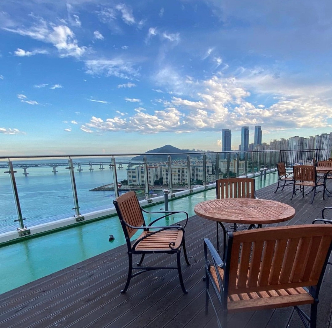 광안리 바다가 한눈에 들어오는 루프탑이 준비돼 있다. 객실에서 보는 전망과는 또 다른 느낌이 둔다. 낮과 밤, 모두 가보길 추천한다!