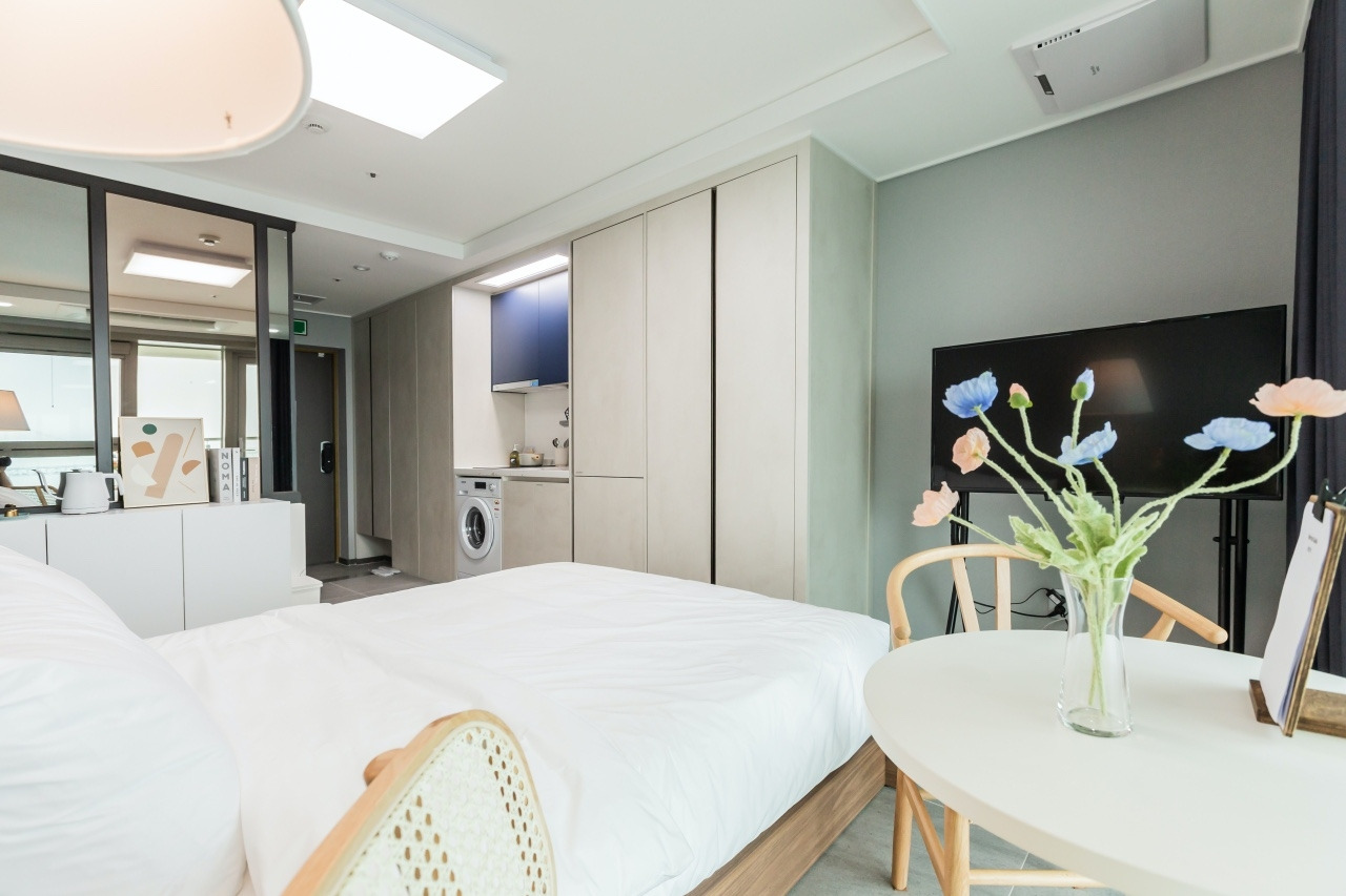 조식이 따로 제공되지 않지만 객실 내에 주방이 준비돼 있다. 인덕션과 싱크대, 냉장고, 냄비, 프라이팬 세트, 냄비 세트, 커피 포트, 커피 머신, 와인잔, 오프너 등 제공된다. 심지어 세탁기도 갖추고 있어서 부산에서 일주일 살기, 한 달 살기 숙소 찾는다면 광안리호텔 어반스테이를 추천하고 싶다.